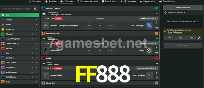 O FF888 oferece uma grande seleção de opções de apostas em e-sports com probabilidades competitivas
